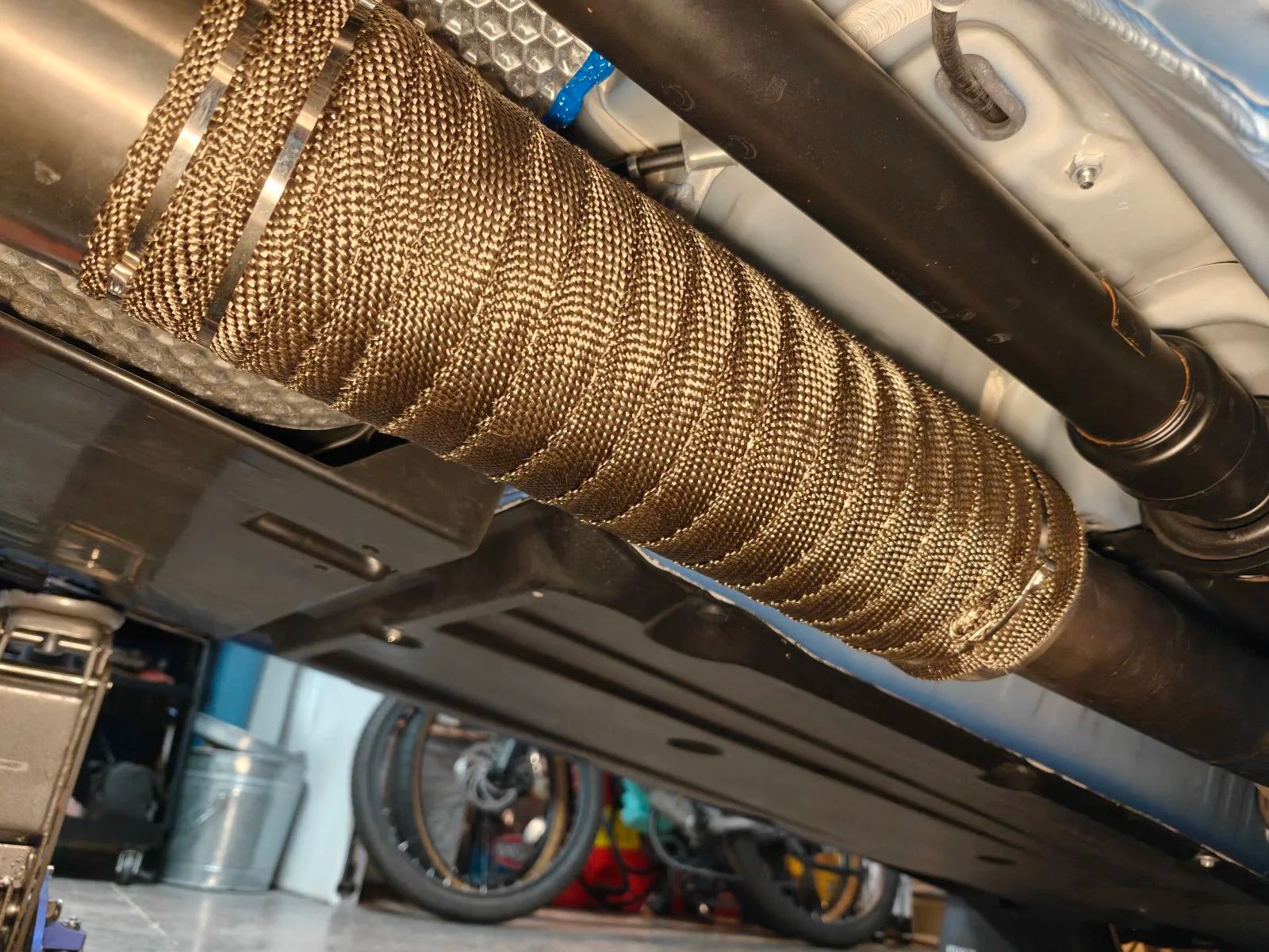Because of the material the titanium exhaust wrap is made of, there is no need to use a silicone based protective coating over the finished exhaust wrap.