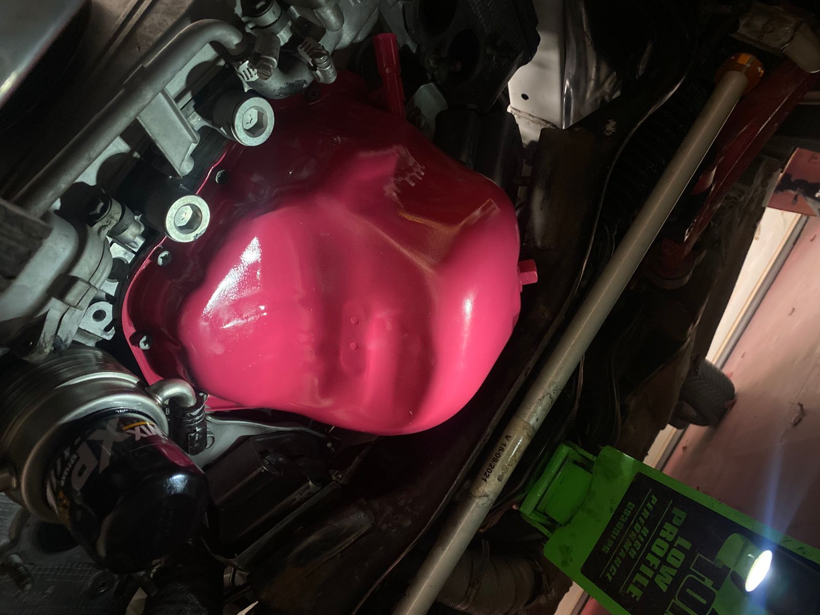 Edit: 5 stars. Good paint. I originally thought it would match the red Grimmspeed components, but this is pink. I purchased the wrong color.