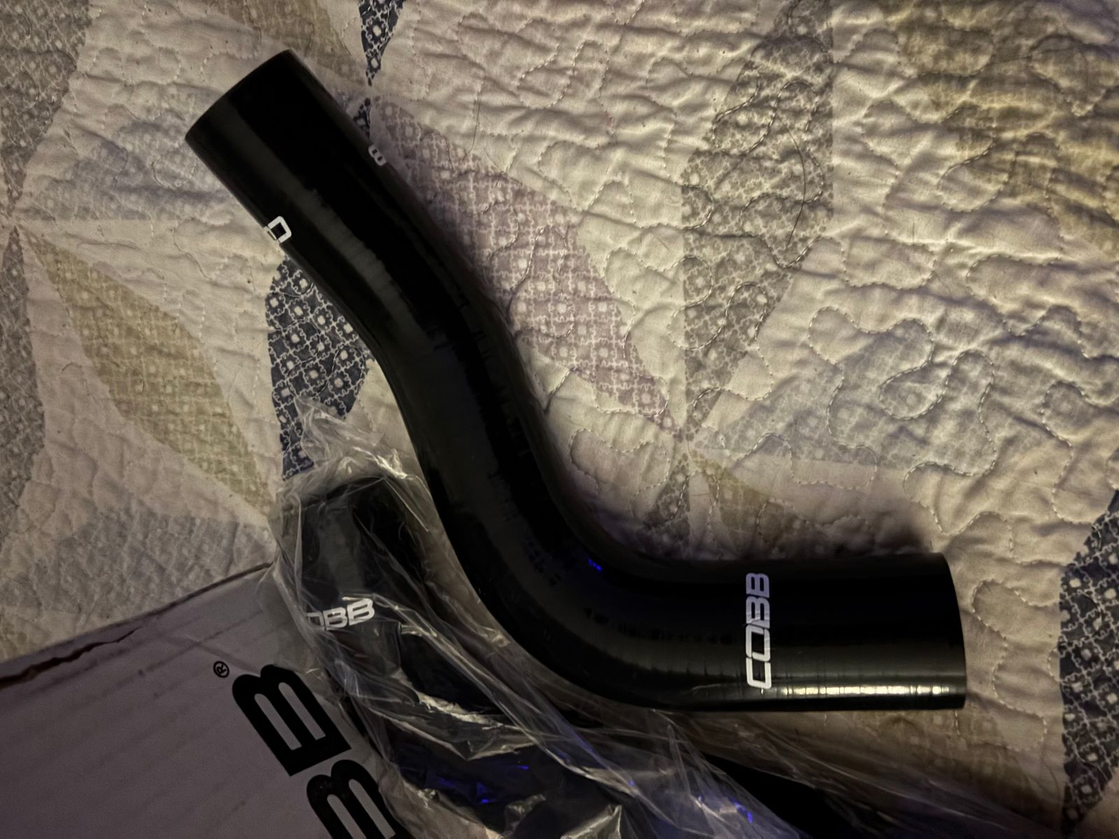 Included in each kit is one lower and one upper radiator hose, each with two clamps each. COBB branding is found at both ends of each hose.