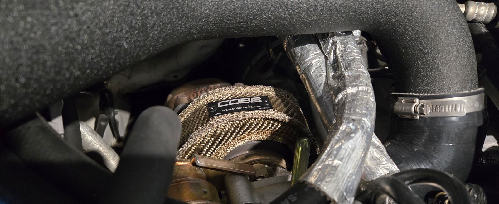 The COBB turbo blanket insulates the turbine housing which has multiple benefits. It prevents the dissipation of useful exhaust energy improving turbo RPM acceleration. This leads to faster turbo spool and getting to peak torque more quickly. It also helps limit heat soak to neighboring parts of the turbocharger.