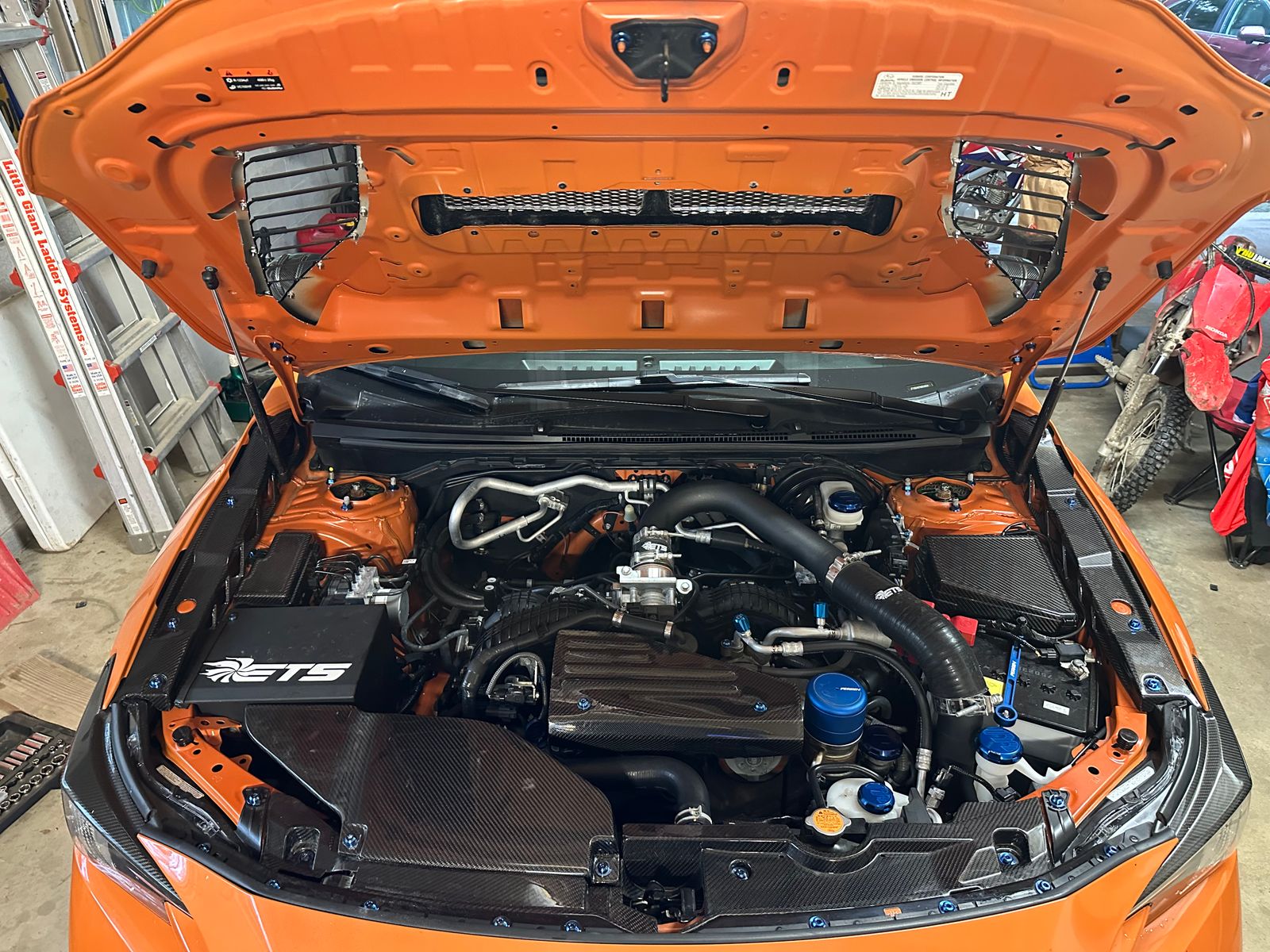 This 6 piece Stage 1 hood kit includes nuts manufactured from extremely durable, anticorrosive, and lightweight GR5 titanium metal. The kit is designed for the Subaru WRX (VB).