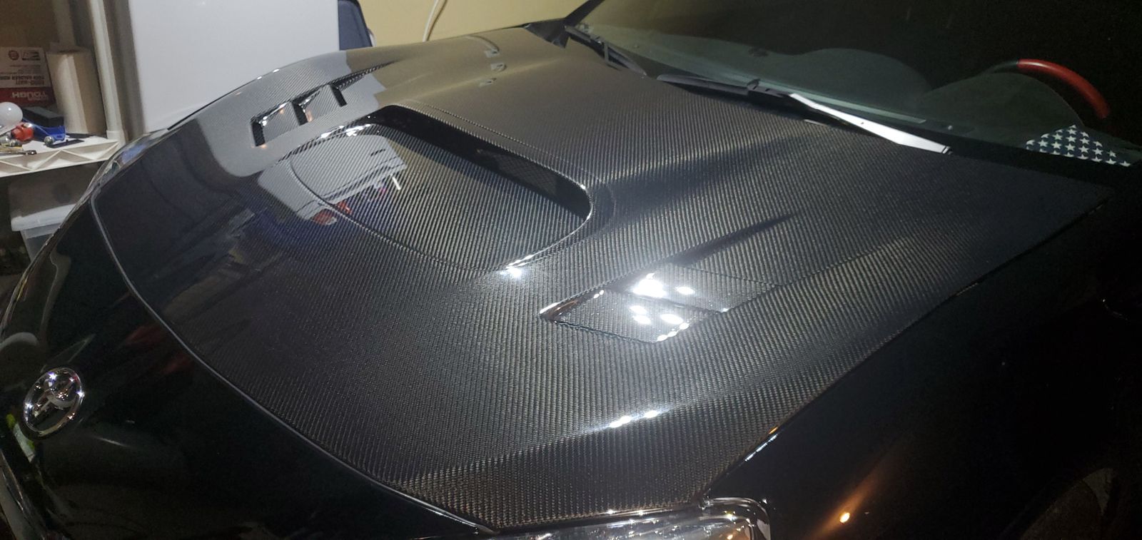 People complain that the carbon hoods weigh more then oem. If thus is true then it is very minimal. The scoops on this hood not only work great as a look but have lots of surface area. I will be top mounting my oil cooler on the main scoop just to be different. I know for a fact it will provide ample air flow for cooling the oil when I go turbo