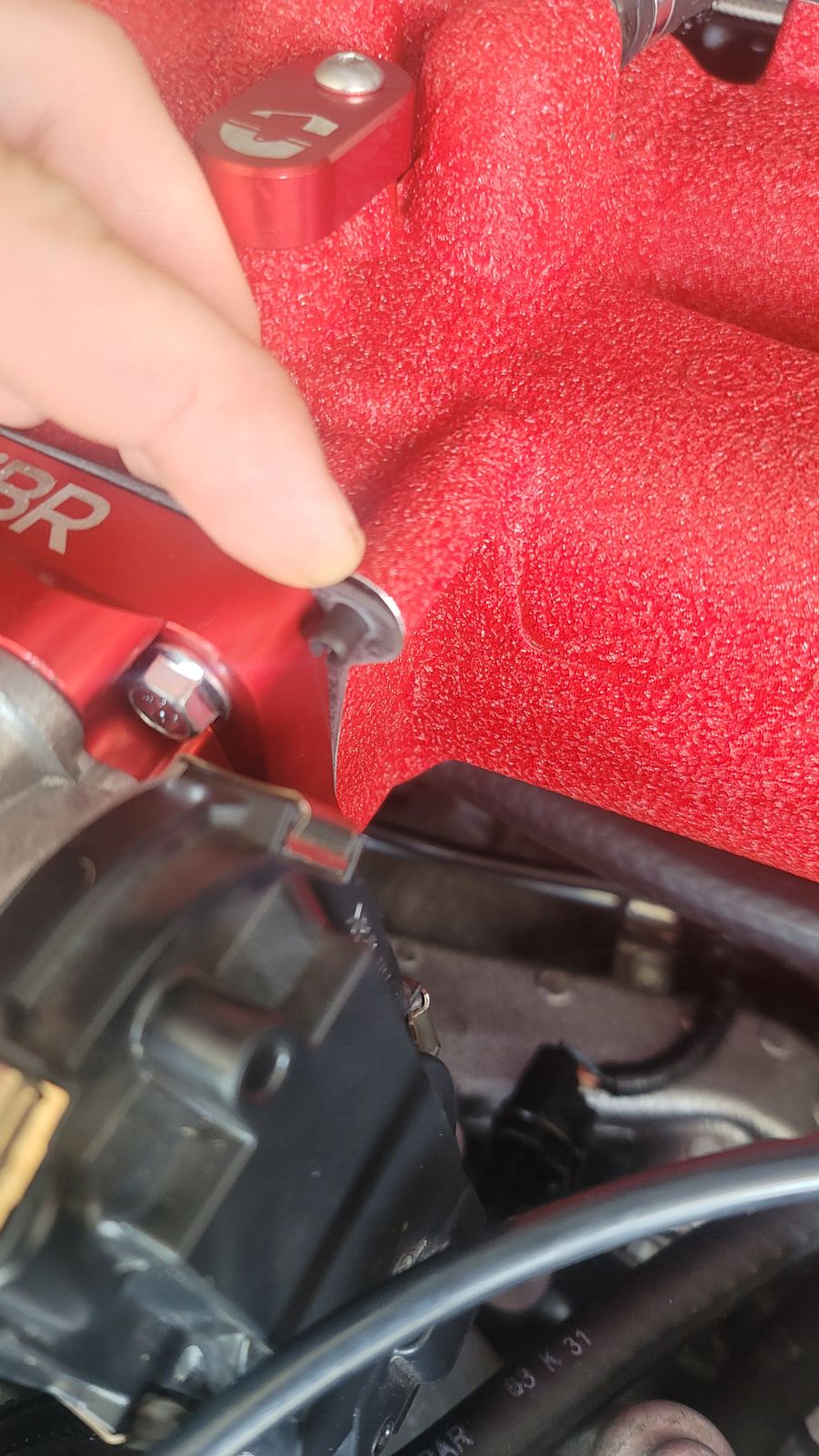 I noticed everyone on YouTube isn't using the gasket between the intake manifold and the adapter plate for the throttle body with the red aluminum intake manifold. You need to use a gasket included with this kit as the aluminum intake doesn't have an o-ring gasket like the plastic intake manifold does! I've included a picture on how to spot if the gasket is installed. Don't be there person with a boost leak.