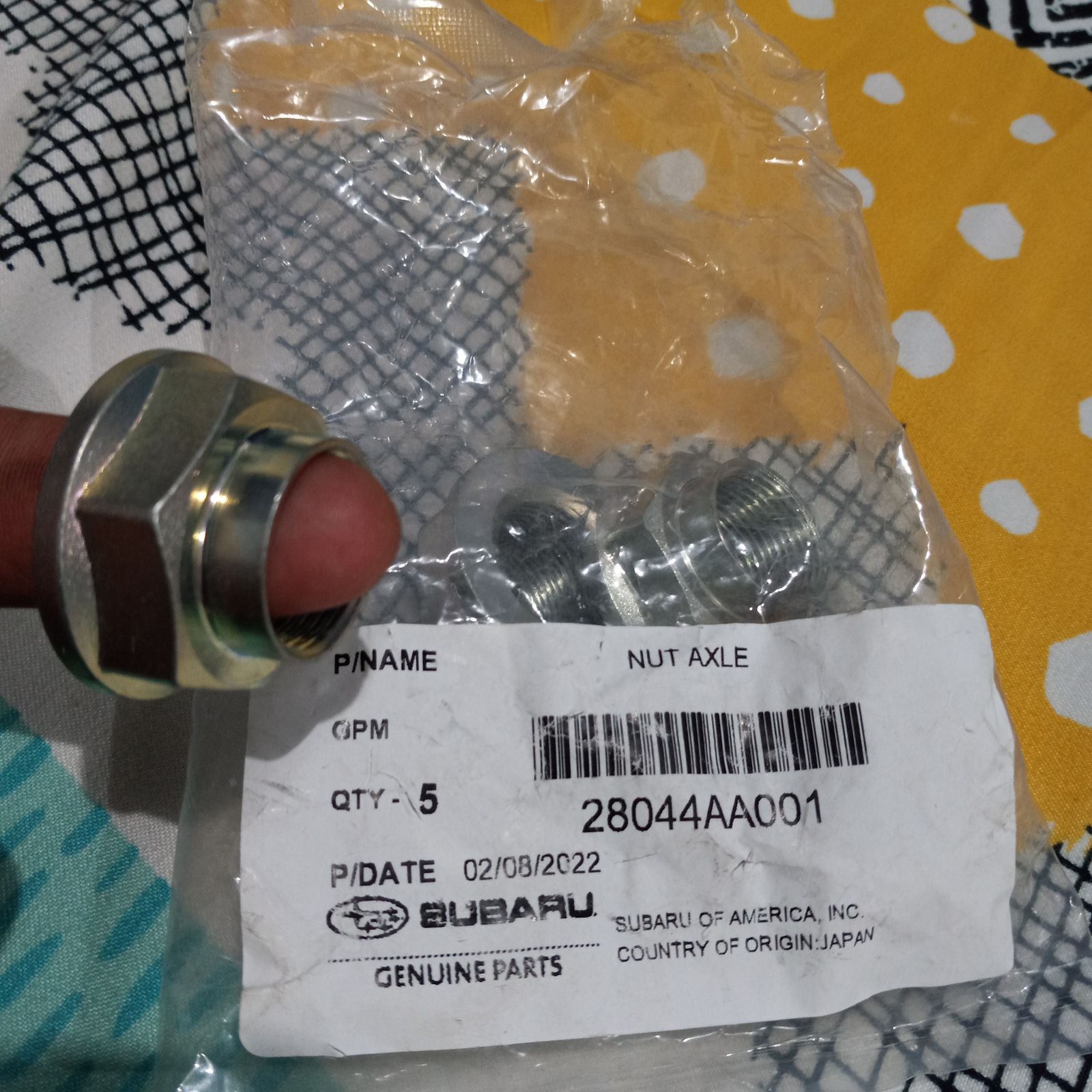 Part #: SUB-28044AA001This Genuine Subaru Front or Rear Axle Nut is a genuine OEM Subaru part #28044AA001 and carries a factory warranty.