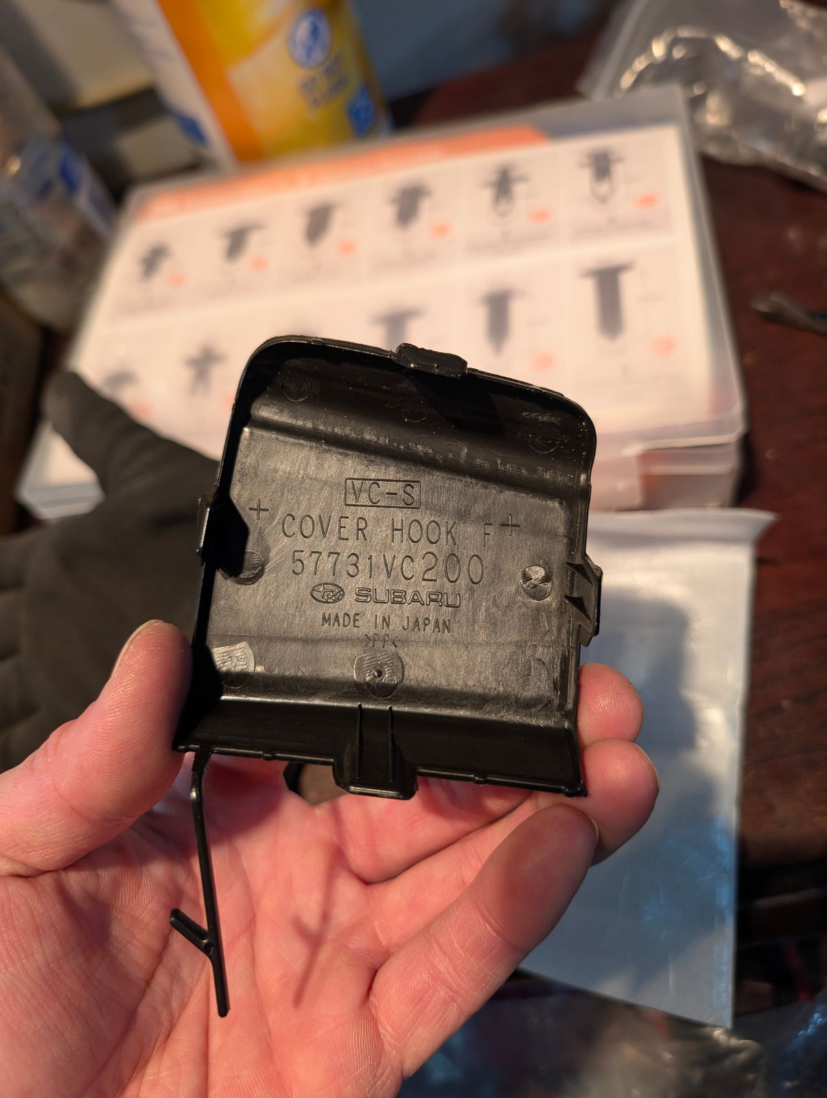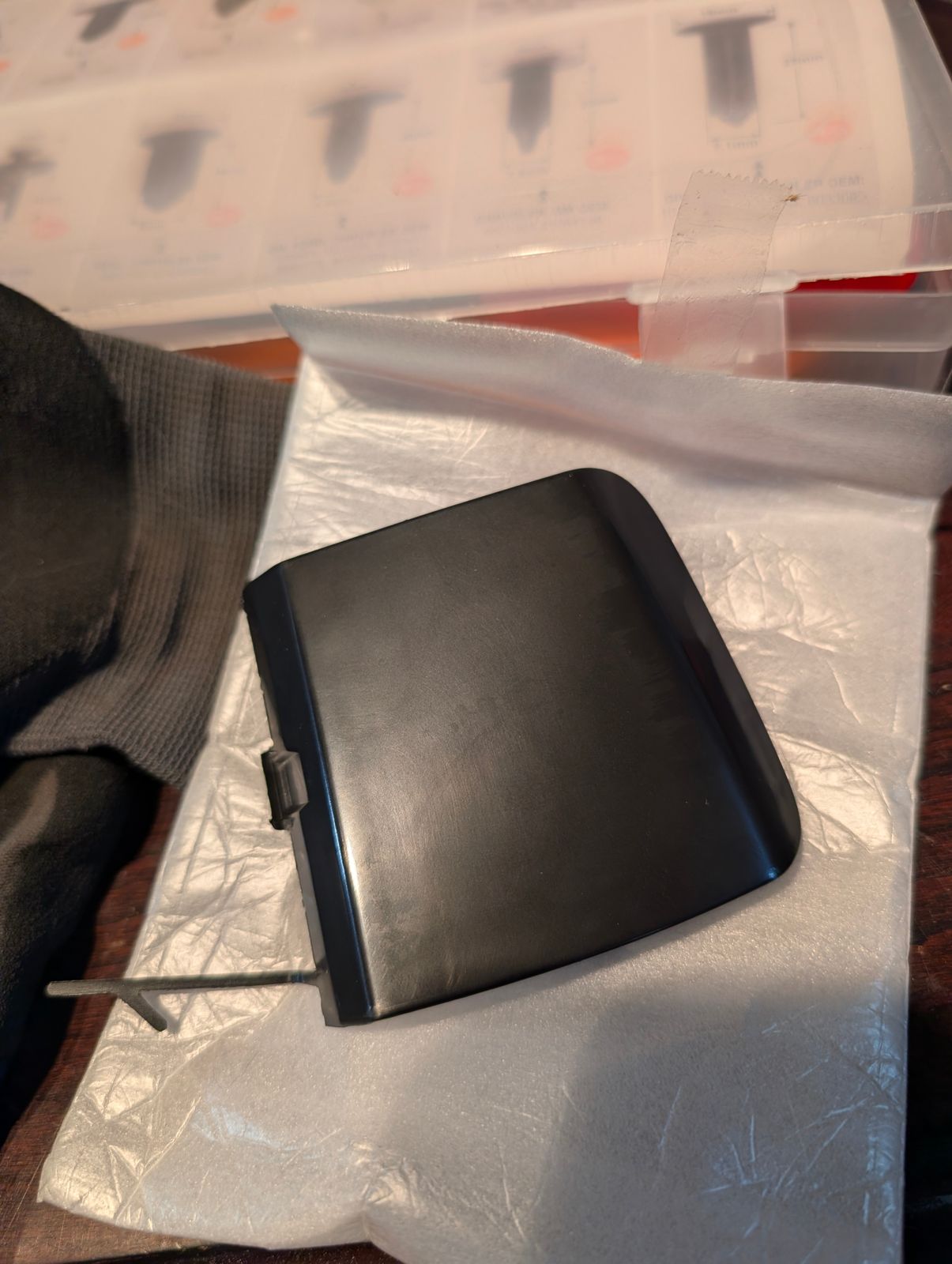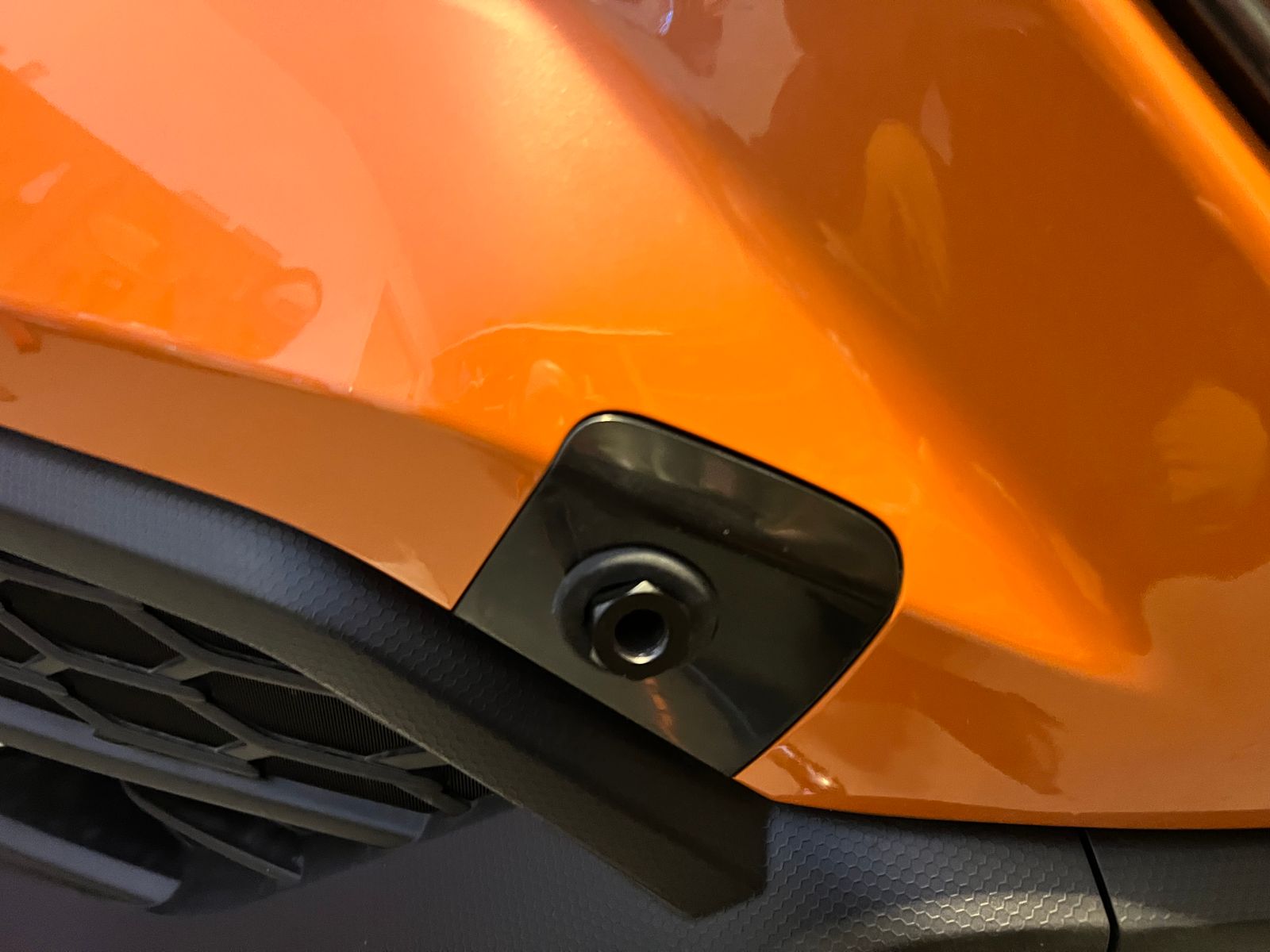 Great price on an oem piece, if you're looking to install a front tow hook but don't want to drill out your paint matched one, get one of these. Comes in a semi-gloss type black, not really flat but not Subaru black or anything.