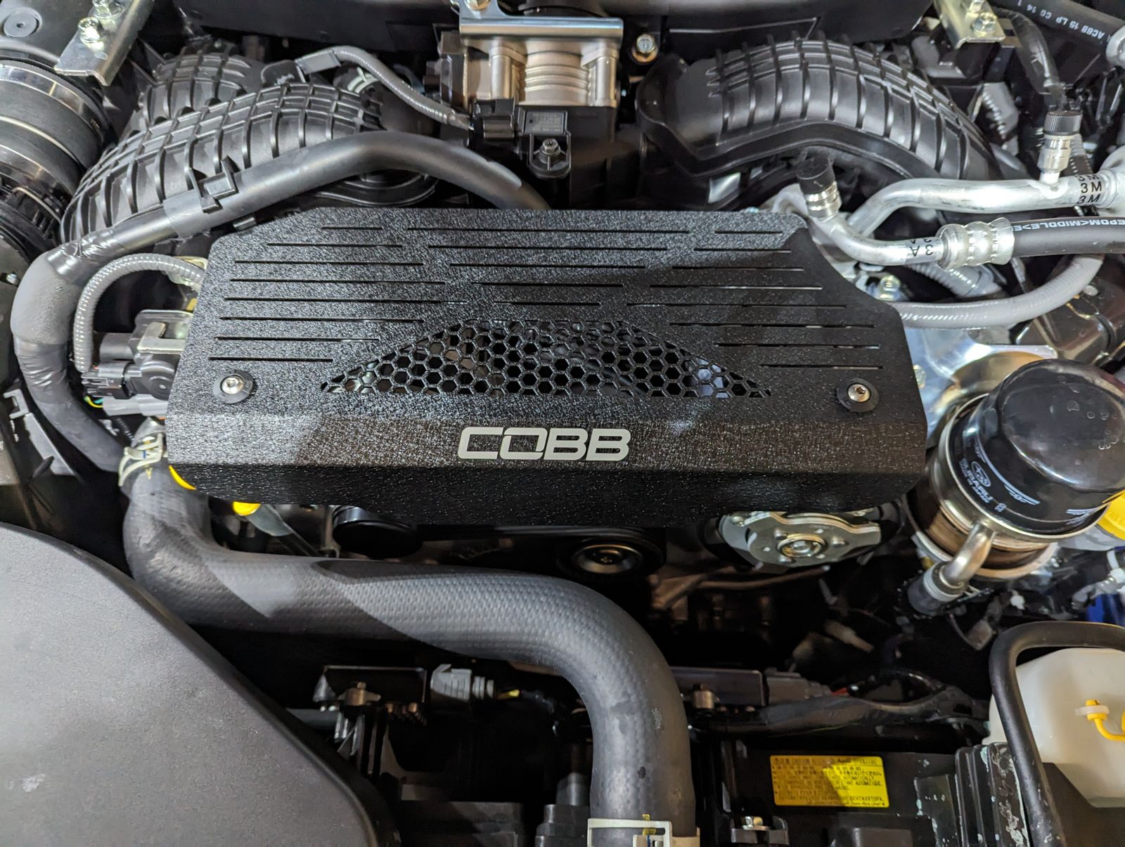 The COBB Aluminum Alternator Cover for your 2022 WRX is made of 5052-H32 Aluminum which is then powder coated a durable wrinkle black. The hexagonal vented pattern is right at home as it matches that used by Subaru on other vehicle components.
