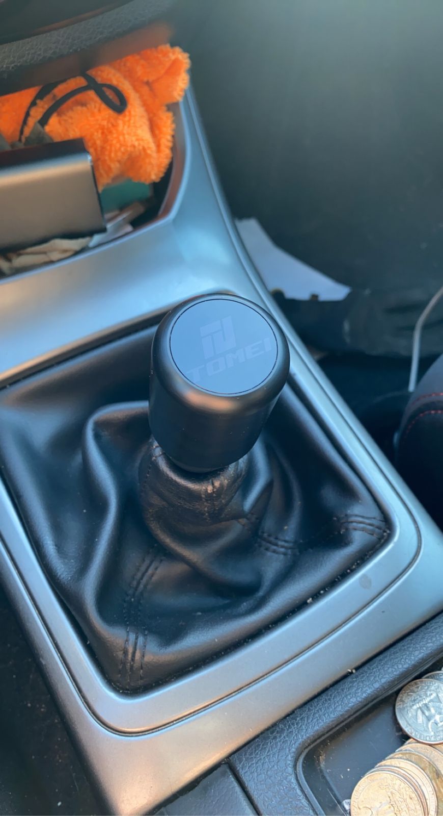 Notes: OE shift knobs are meh. But, Tomei shift knobs are nice! Lighter than factory and a different shape is pretty cool. Not only that, but on a hot summer day, these wont be 1,343,345,887.05 degrees after sitting in the parking lot all day at work. It's easy, twist off the old boi, twist this boi on and enjoy!